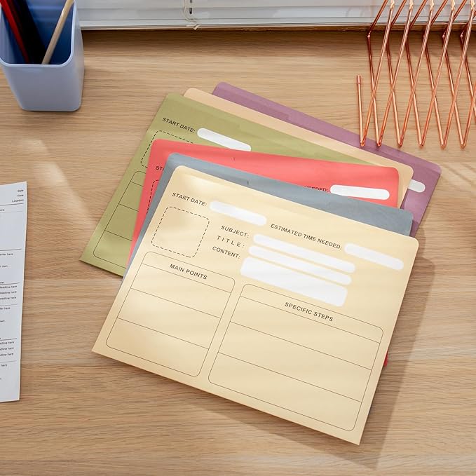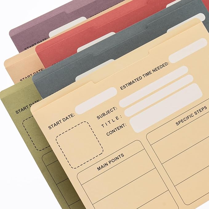 - Project Design - Each file jacket offers spaces to record the start date, required duration, project icon, and specific requirements of your projects. This helps in managing tasks systematically, ensuring no detail is overlooked