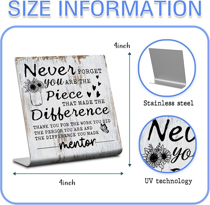 - ~Office Home Gift to Thank Coworkers~ The vintage base decoration of this thank you gift features the fun message "Never FORGETYOU ARE THE PIECE THAT MADE THE DIBEFERENCE THANK YOU FOR THE W RK YOU DIDTHE PERSON YOU ARE AND THE DIFFERENCE YOU MADE" for Mentor that will As a true, loving, grateful and blessing gift
