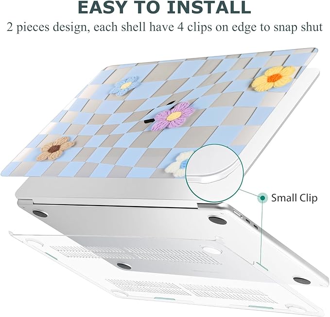 - Pro Cooling, Durability: The bottom shell has two rows of vent holes and raised rubber feet to speed up air circulation and achieve maximum heat dissipation. 4 rubber feets provide stability and non-slip grip, keeping your MacBook air m1 in place, safer and more stable in use. The checkered mac book air 13 case takes into account both durability, portability and protection. Available in a variety of colors and styles, ideal gift for families, children and friends