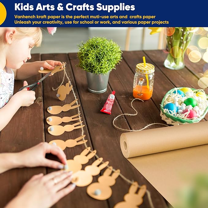 - 【Great Craft Art Supplies】Unleash your creativity with this unwaxed and uncoated craft art paper, it can be used for arts and crafts, drawing supplies, coloring, painting, flower wrapping, gift wrapping, bouquet wrapping, packing, protecting floors, halloween decorations and more. Use these brown paper rolls for acrylic paint, oil paints, chalk, crayon, markers, felt pens, finger painting, origami, watercolor and tempera paint, which can be cut down to any size or shape.
