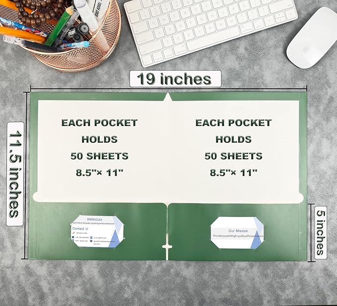 BIBRADAA® 50 Packs Dark Green Pocket Folders,Paper Folder Surface with Waterproofing,Letter Size,Holds 100 Plus Sheets,for School,Office,Business. (50, Dark Green)