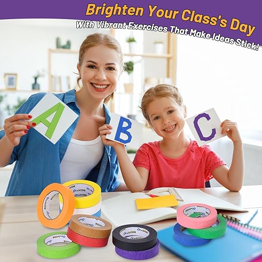 - Reliable Quality: our labeling tape is made of quality textured paper, safe and reliable, soft and colorfast, odorless and waterproof, it is thicker, sturdy and wear resistant, and you can even write or draw on the masking tape with pens, ideal for painting, crafting, and art activities. colored masking tape has perfect adhesion. You can apply colored masking tape on various surfaces, such as plastic, glass, paper, metal, ceramics, canvas, whiteboard, paint walls, floors, etc.