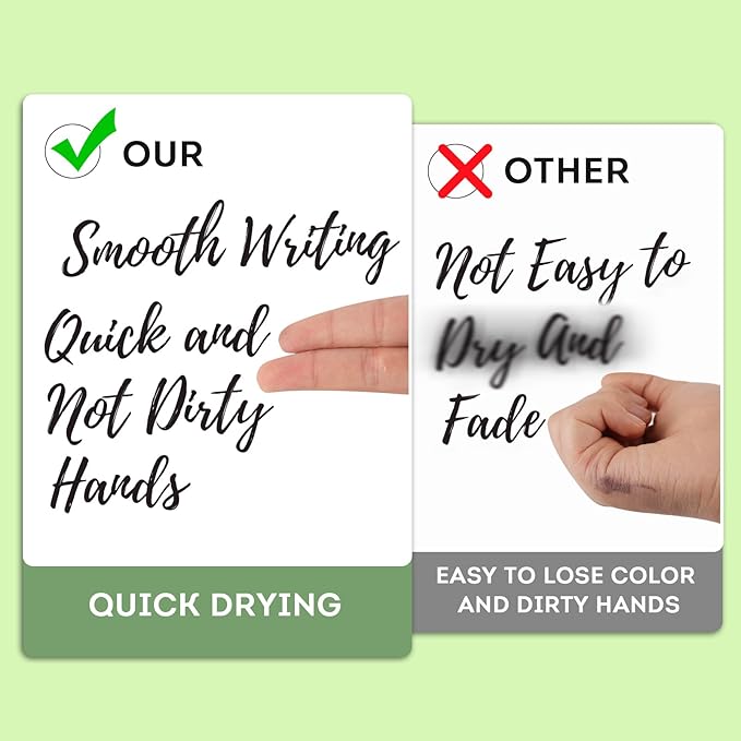 - [1 SECOND FAST DRY PERMANENT MARKERS ] Say goodbye to messy smudges with black permanent markers! These permanent markers feature a 1-second quick-drying formula that ensures your writing dries instantly, keeping your notes, drawings, and labels clean and professional. Perfect for fast-paced environments like schools and offices, these markers allow you to write smoothly without worrying about blurring. Whether you're jotting down ideas or creating detailed artwork, these markers are the ideal tool for getting clear, easy-to-read results every time.