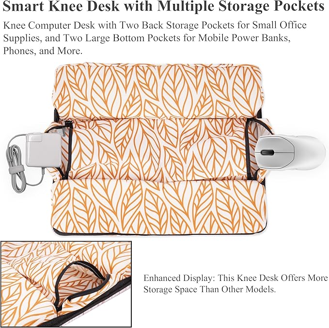 - More Storage Space for Your Convenience: With two storage pockets on the back and two large storage bags at the bottom, our lap desk provides ample space for your office items, power banks, and mobile phones.