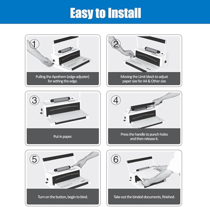 - 【Wide Application】The spiral coil binding machine is suitable for hole punch binding of books, picture books, notebooks, copywriting, etc. Suitable for A4 / A5 size paper or Smaller Sizes. Can be widely used in printing shops, offices, schools, homes and other places.