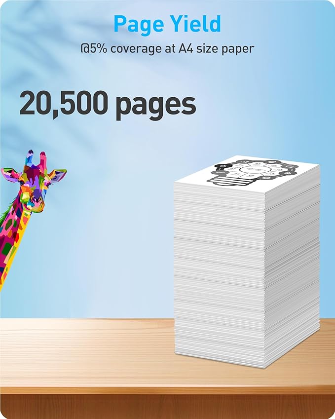 - Page Yield: up to 20,500 pages per black toner, @5% coverage at A4 size paper