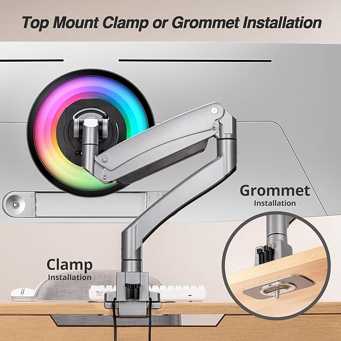 - Space-Saving Design: Compact heavy-duty base; Occupies only 4.7 x 4.7 in (120 x 120 mm); top-mount c-clamp supports desks up to 1.8 in (45 mm), grommet mount supports up to 1.6 in (40 mm).
