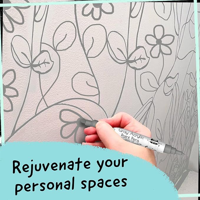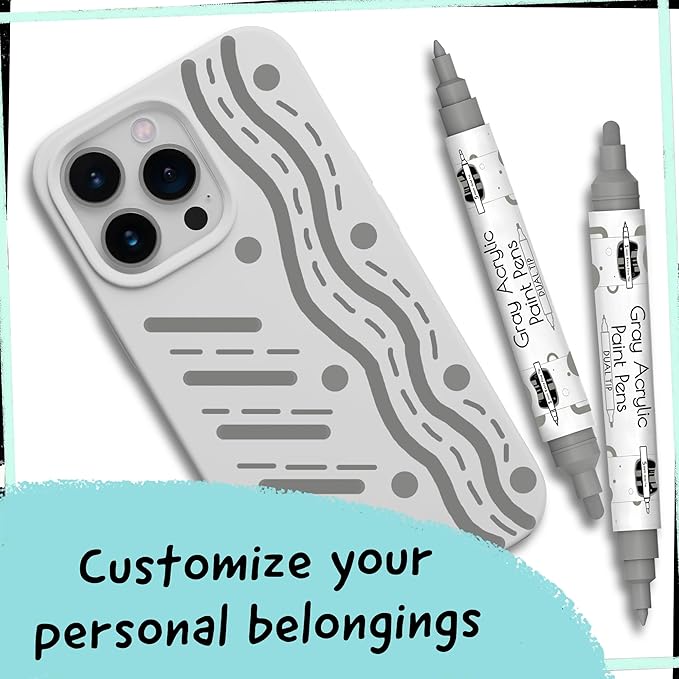 - Gray Paint Pens Metallic - Highly pigmented, Quick to dry & used as paint markers for canvas, paint markers for wood, or as glass paint markers, rock painting pens, on wine glasses & ceramic paint pen (dishwasher safe ink)