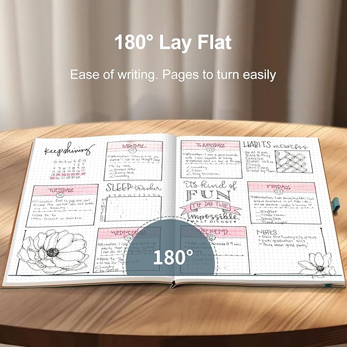 - LAY FLAT DESIGN FOR WRITING: The thread-bound design allows this notebook to 180° lay flat, ensuring easy writing and reading for both right and left-handed users without awkward hand positions. This provides an ideal ergonomic writing experience