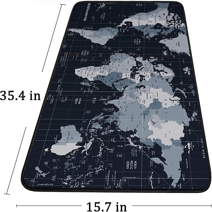 Large Extended Gaming Mouse Pad with Stitched Edges,(35.4X15.7In) Durable Non-Slip Natural Rubber Base, Waterproof Computer Keyboard Pad Mat for Esports Pros/Gamer/Desktop/Office/Home, Map