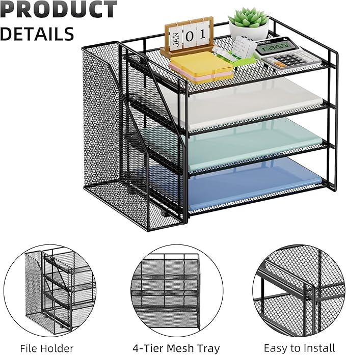 - 【High-quality Materials】The mesh desktop file organizer is made of lightweight and durable metal mesh, reinforced with a sturdy steel frame, and the outer layer is epoxy-coated, rust-proof and very durable, with long-lasting strength and reliable performance.