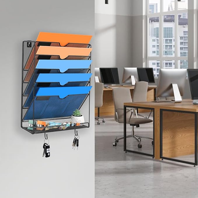 - Space-saving Design: The 6-tier wall file organizer gives you enough space to store your file, paper, mails, magazines, and other office supplies. Not only can you utilize the vertical space anywhere, but also can solve the problem of clutter.