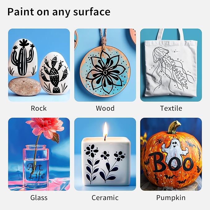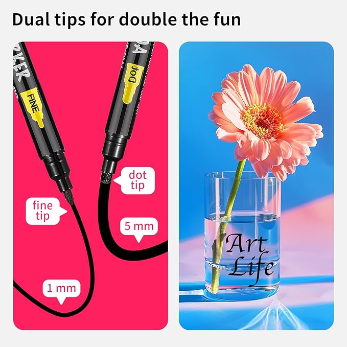 - DUAL TIP: Our rock painting pens come with a 1-5 mm dot tip and a 1mm fine tip. Designed to give you the flexibility to switch effortlessly between fine lines and bold strokes, these paint pens acrylic markers expand your creative horizons and enhance the intricate details in your work.