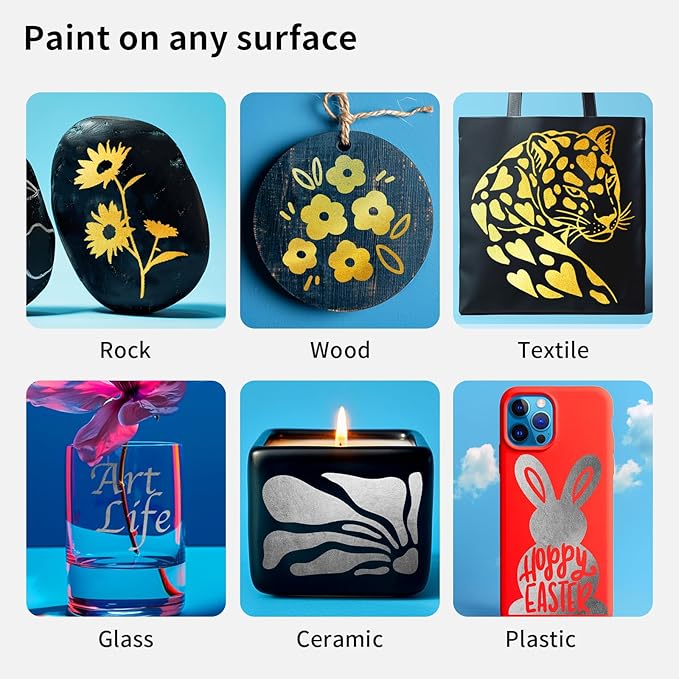 - PREMIUM QUALITY: This gold and silver paint pens features high-quality acrylic paint and a durable nib that dries opaque, so you donβt have to make a second layer! The gold permanent paint marker is acid-free, waterproof and wear resistant. Itβs a great tool for art projects, DIY crafts, coloring, greeting cards, poster making, painting, highlighting.