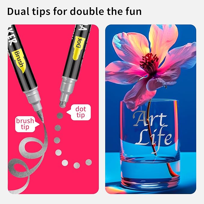 - DUAL TIP: Our rock painting pens come with a dot tip and a 0.5-6 mm brush tip. Designed to give you the flexibility to switch effortlessly between fine lines and bold strokes, these paint pens acrylic markers expand your creative horizons and enhance the intricate details in your work.