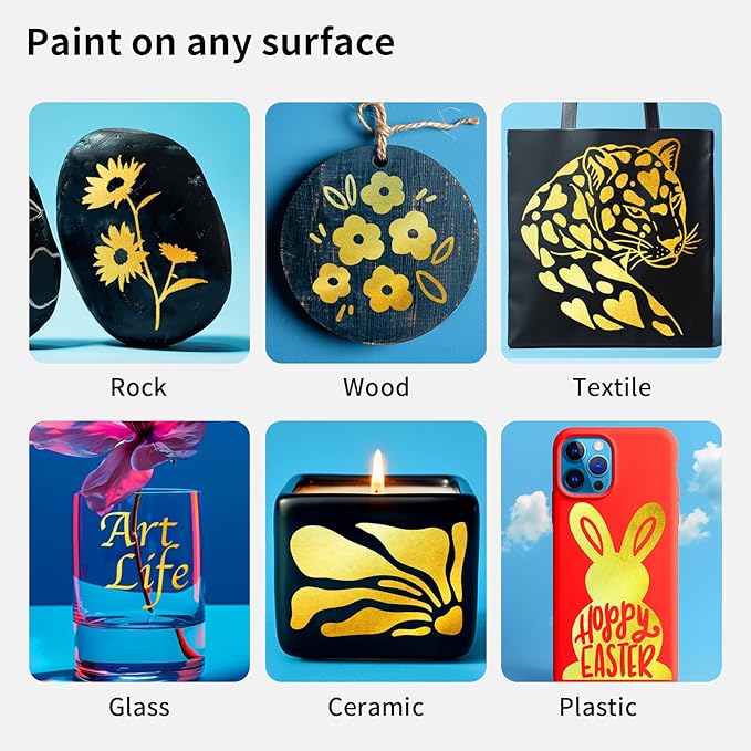 - PREMIUM QUALITY: This gold-pack of paint pens features high-quality acrylic paint and a durable nib that dries opaque, so you donβt have to make a second layer! The gold permanent paint marker is acid-free, waterproof and wear resistant. Itβs a great tool for art projects, DIY crafts, coloring, greeting cards, poster making, painting, highlighting.