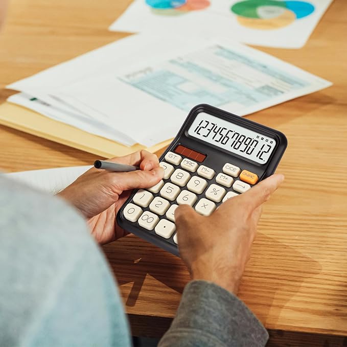 - 【IMITATION MECHANICAL KEYBOARD】Imitating the knocking feel of a mechanical keyboard (the keyboard cannot be disassembled without special tools), the key operation is fast and accurate, bringing a pleasant experience.. The touch of your fingers and the unique clicking sound are addictive.Large button, candy color.Large LCD screen,12-digit display, vertical back,15-degree angle for easy-to-read calculator