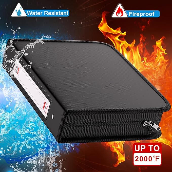- 【Fireproof&Water-proof】ZOOPIP Fireproof 3 Ring Binder is made of anti-static double layered non-itchy silicone coated fiberglass, which can withstand temperatures up to 2000°F. 3 Ring Binder with zipper closure has been passed by SGS TEST:UL94 VTM-0 Certified. At the same time, the glass fiber has excellent waterproof performance. In most cases, our storage pouch can withstand the impact of water.