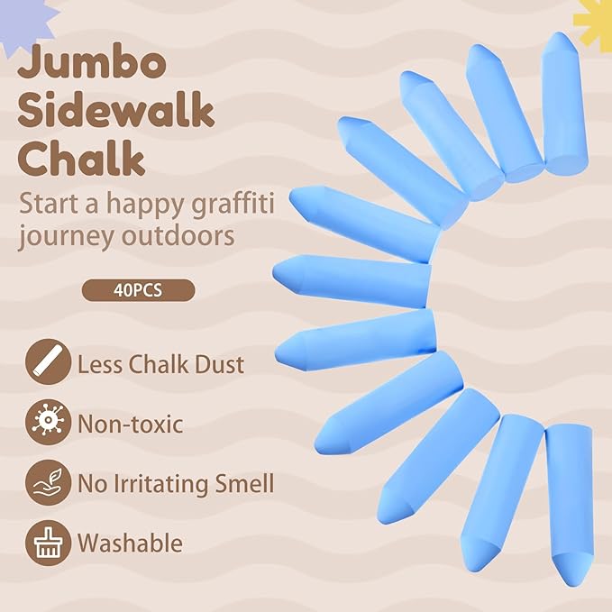 - Package Information: you will get 40 pieces of jumbo sidewalk chalks, allowing you to write and draw on the sidewalk or on the blackboard; Sufficient quantity will meet your using needs, and you can share them with your family