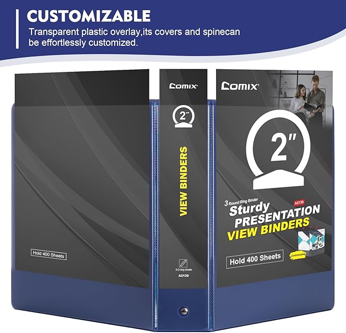 - Customizable:View binder with a Clear View poly overlay allows you to customize the spine and both covers.