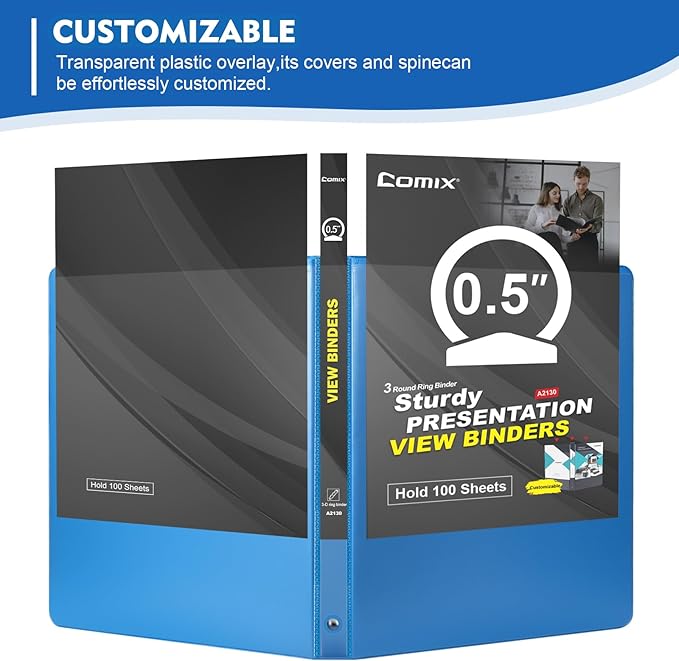 - Customizable:View binder with a Clear View poly overlay allows you to customize the spine and both covers.