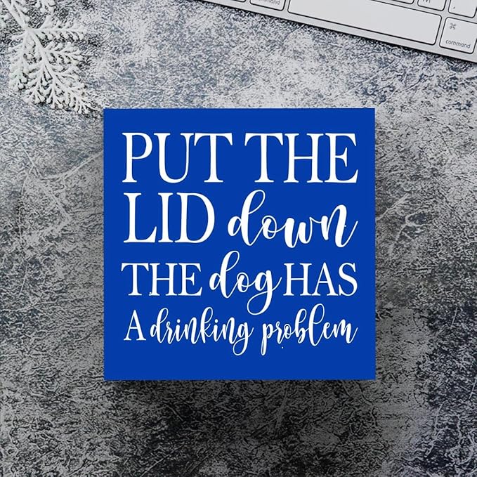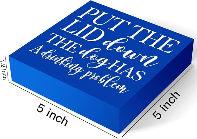 Funny Blue Square Box Sign - Bedroom Bathroom Dining Room Farmhouse Coffee Bar Tabletop Bookshelf Wall Decor - Wooden Box Sign with Toilet Humor Quotes for Home