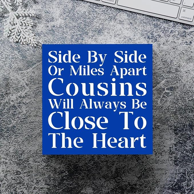 Cousin Wooden Box Sign Decorative Cousins Gifts Home Office Desk Decor for Tabletop Bookshelf Farmhouse Bedroom Living Room Library Dining Room Rustic Square Tiered Tray Wall Decor birthday Blue