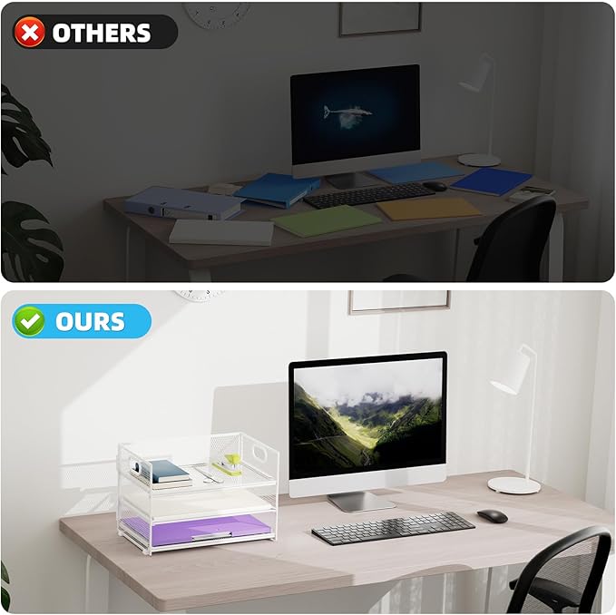 - 【PREMIUM QUALITY】The mesh desktop file organizer is made of lightweight durable metal mesh and reinforced with a solid steel frame that makes it have long-lasting strength and reliable performance.