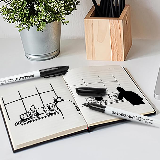 Dabo&Shobo Dry Erase Markers Bulk, 120 Count Black Whiteboard Markers, Low Odor Dry Erase Markers, Chisel Tip, Suitable for School, Office, or Home
