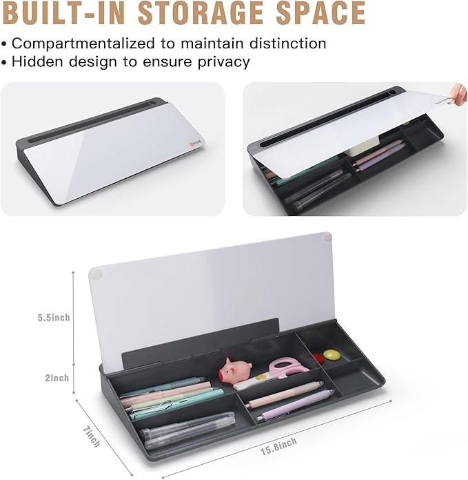 - 💯MULTIFUNCTIONAL: Writing+Storage+Hold+Keyboard Stand, our desktop white board is an all in one multipurpose desk board buddy. Equipped with 2 white dry erase marker and 1 blue eraser. One purchase, All in place!