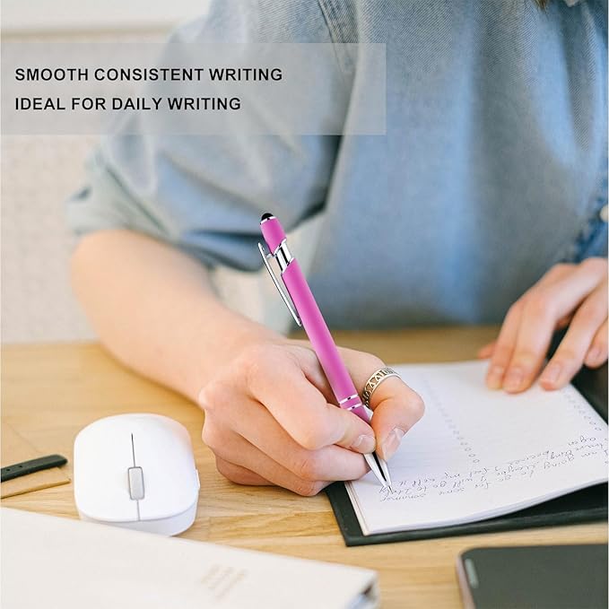 LINFANC 12 Pack Pink Ballpoint Pen with Stylus Tip, 1.0 mm Black Ink Smooth Writing Pens, Metal Stylus Pens for Touch Screens
