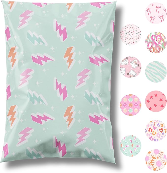 6x9 Designer Poly Mailer 100 Pack Heavy Duty Waterproof Self Seal Shipping Bags for Small Business Large Mailing Envelopes Bulk Tear Resistant Cute Packaging Lightning Bolt