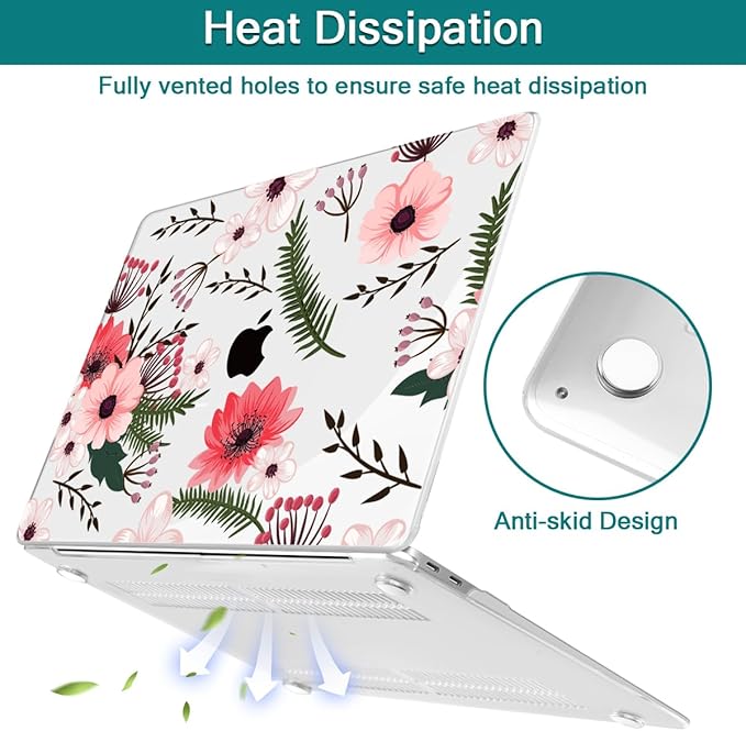 Teryeefi Compatible with M2 M1 MacBook Pro 13 Inch Case A2338 A2289 A2251 A2159 A1989 A1706 A1708 (2024 20203 2022-2016), Hard Shell Case & Keyboard Cover for Mac Pro 13" - W-Floral Pattern
