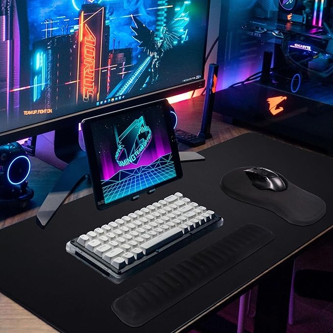 - SOFT, COMFORTABLE & DURABLE: The keyboard wrist rest and mouse pad set are made of ultra-soft 75D high-density memory foam, offering soft support and slow rebound for long-lasting comfort.