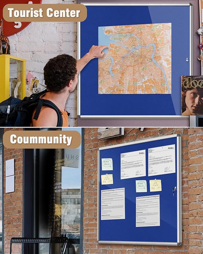 - 🌟✔【Secure Enclosed Bulletin Board】: This lockable bulletin board ensures the safety of your announcements and guarantees that posted items can only be removed by authorized individuals. Suitable for push pins, thumb tacks, or map pins, it's perfect for displaying notes, messages, pictures, memos, calendars, menus, reminders, and more. Ideal for home, office, or business environments.