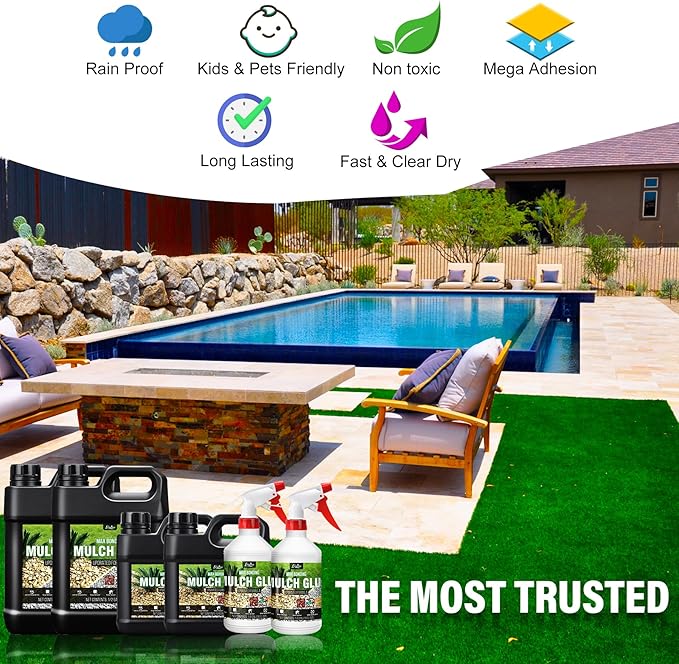 - 100% SATISFACTION GUARANTEE - Mulches glue is a cost-effective choice for landscaping projects. Simplify your life and eliminate the need for frequent sweeping and landscape maintenance! Feel free to contact us if you are dissatisfied with our mulches adhesive for any reason.