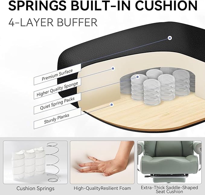 - 1. Stylish & Ultra-Comfortable Office Chair Upgrade your workspace with this elegant light green office chair that blends modern style with ergonomic function. Featuring plush lumbar support, a padded headrest, and a saddle-shaped seat cushion, this high-back office chair keeps your back and neck comfortable all day. The Efomao office chair brings both support and style.