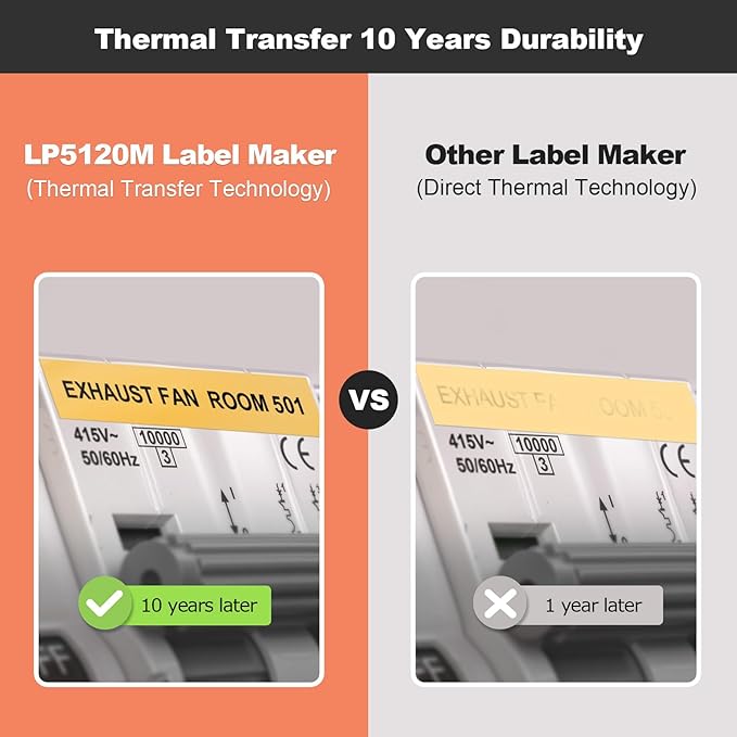 SUPVAN LP5120M Label Maker Machine with Keyboard & AC Adapter, Waterproof Thermal Transfer Label Printer with Ik+ Icons for Garage, Home, Office Organization