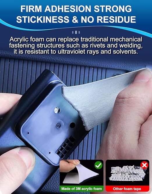 - 【Multi-Use Mounting Tape】The versatile design of this tape allows it to adhere firmly to a variety of smooth surfaces such as walls, glass, tiles, aluminum, metal, and wood. It can be used for posters, hooks, plastic hangers, signs, nameplates, metal plates, wire and cable clamps, security cameras, photo frames, and other car home school office decorations.