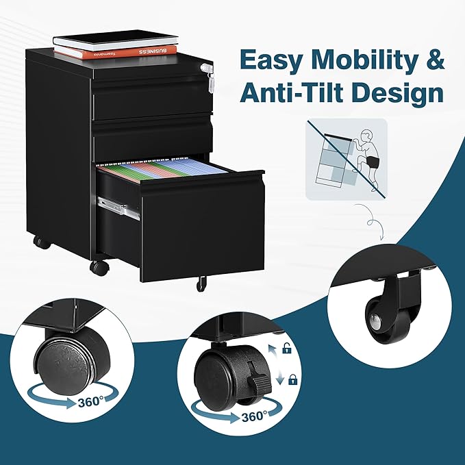 - 【File Cabinet with Lock】: A lock is set at the top of our file cabinet and is designed to lock all three drawers. This helps to keep your sensitive documents secure from prying eyes. You are provided with two keys for the lock.