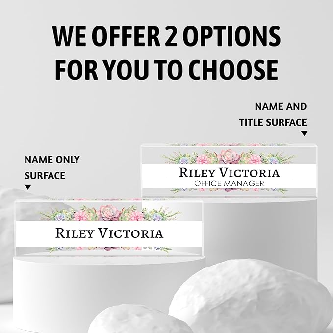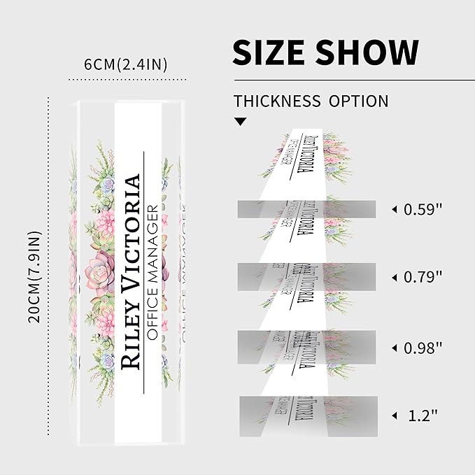 - 【Perfect Office Decor】Desk name plate personalized may be an indispensable item around you. It can be used as decoration for various occasions, such as offices, study rooms, conference rooms, classrooms. It also comes in 4 different sizes, suitable for different office scenarios, Clear 3D effects showcase your favorite fully designs and names, add an extra touch of elegance to your office.