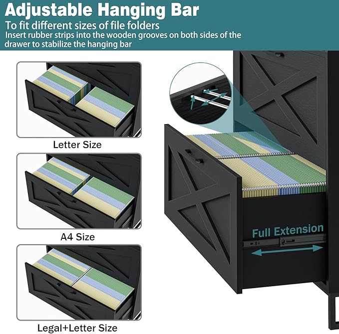 - 🗂️【5 Options for Hanging Folders】Large drawer for storing A4/letter/Legal size hanging folders, Flexible Hanging Rods Accommodates Multiple Sizes File: Legal+A4 Size/ Legal + Letter Size/ Letter+ A4 Size/ A4+A4 Size/ Letter + Letter Size.