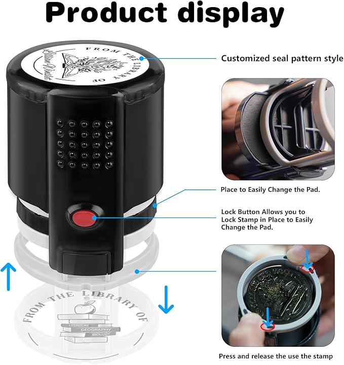 - Personalized book stamp: Our book stamp offers a customizable design, allowing you to add name stamp for books, initial stamps personalized, or custom stamps self inking. This ensures that your self inking stamp are easily identifiable and adds a personal touch to your collection