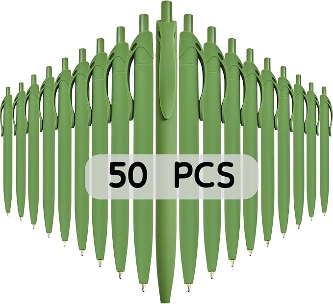 BallPoint Pens, 50 Pack (BLACK Ink),Bulk Pens, Green Barrel,Click Pens for Office Home and School, Retractable Ballpoint Pens, Medium Point, 1.00MM (Green)