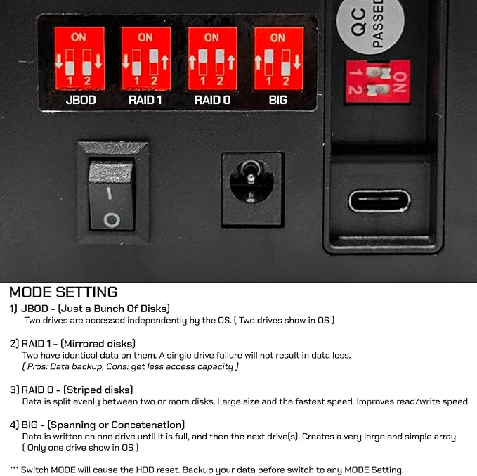- RAID 0, RAID 1, JBOD, BIG Mode setting