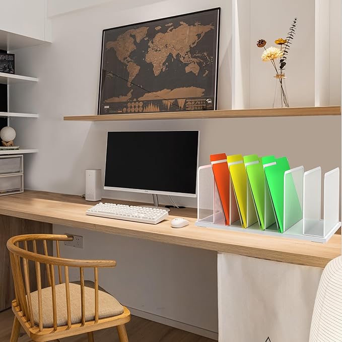 Kuntine.B Desk File Organizer Upright Mesh Desktop Organizer File Sorter Office Organization File Holder for Home, Office & Classroom (White, 2 Pack 7-Section)