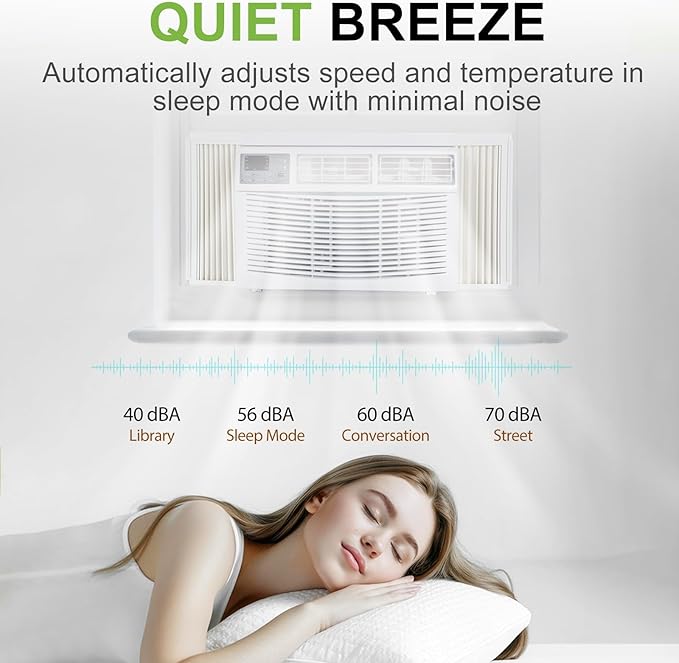- ENERGY SAVING: The air conditioner has a Combined Energy Efficiency Rate (CEER) of 11.0. Equipped with an Eco Mode to save energy and a Sleep Mode to ensure comfortable sleep conditions by adjusting the temperature throughout the night. Features a flexible timer that can be set from 0.5 to 24 hours, allowing for automatic shut off or operation according to your schedule.