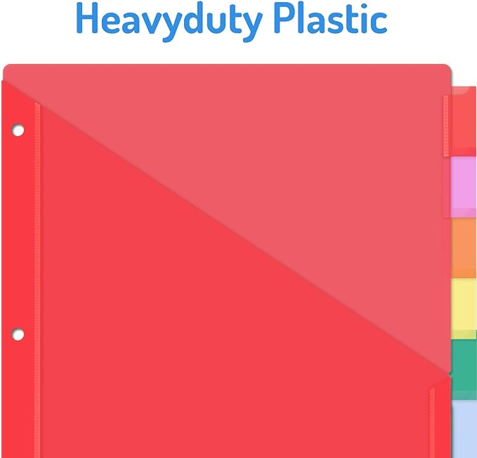 - Easier Organizer & Divider: 3 Holes punched, fit in standard 3 ring binders. Our premium binder folder dividers have slash pockets, so you can keep your papers organized and easily locate them with colorful tabs.