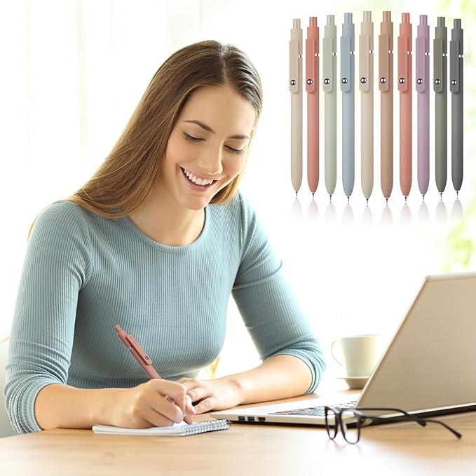 - Gel Black Pens: you will receive 10 quick drying ink pens with a modern minimalist design in 10 different colors for a total of 10 pens to suit your needs daily use and replacement needs, you can also share with others, idea office essentials for office