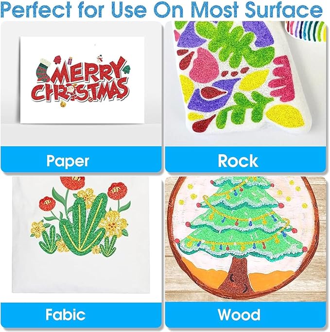 - 🎨12 Colors Sparkly Glitter Markers: Classic 12 glitter paint Markers pens, each infused with glittering pigments that add a mesmerizing sparkle to every painting. Beautiful fluorescent gloss combined with waterproof, quick-drying, high-coverage advantages, can bring you better art experience fun.
